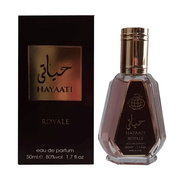 کلن زنانه مردانه فراگرنس ورد مدل حیاتی قهوه ایی حیاتی رویال رایحه موصوف عربی حجم ۵۰ میل